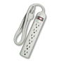 Six-Outlet Power Strip features three-prong grounded plugs and outlets. Power strip offers on/off switch with 15-amp circuit breaker. U.L. and cUL approved..