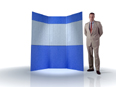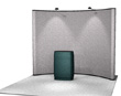 20ft flat wall pop up booth with fabric panels, lights and cases.