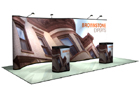 20ft graphic mural pop up display with lights and shipping cases.